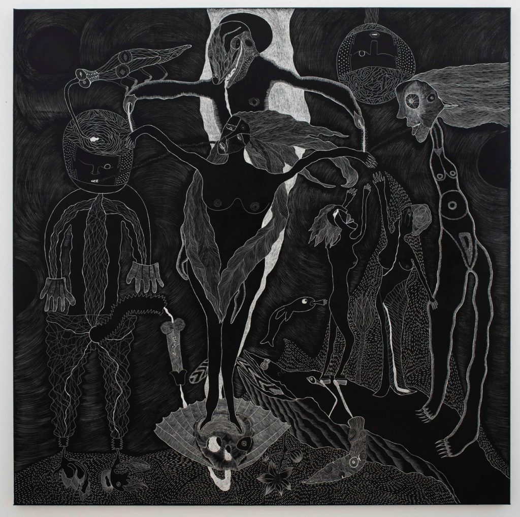 ‘I am an artist working across multiple mediums, mainly painting, drawing and filmmaking. My works set forth a queer retelling of mythical narratives. Gorgons, witches, hybrids, and hermaphrodites fuse into an image of queer subconsciousness. Nakedness is disengaged from sexuality, binaries of femininity and masculinity are transgressed. Female desire, with its long history of being demonised, is unabashedly celebrated; the female gaze regains its power.