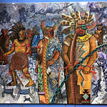 Judy travels to power places on the earth and brings back tiny fragments from those places to put in ever painting or sculpture that calls for them, including copper, silver, turquoise, garnet, prayer ashes, and minute crystal prayer beads.